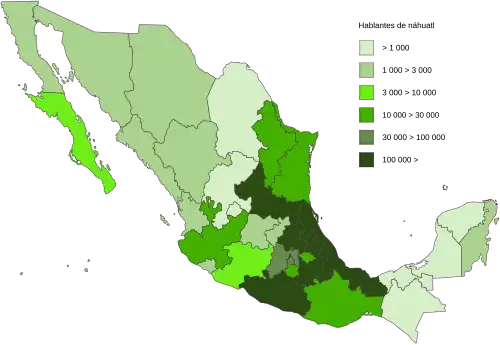 Náuatle é falado no México, numa grande parte do país, mas está mais concentrado no oeste e sudoeste da Cidade do México nos estados de Puebla, Veracruz, Guerrero e Hidalgo.
