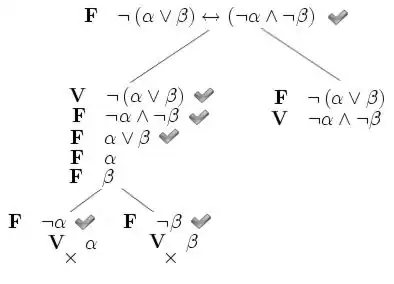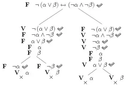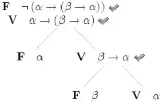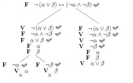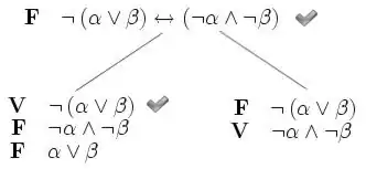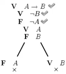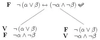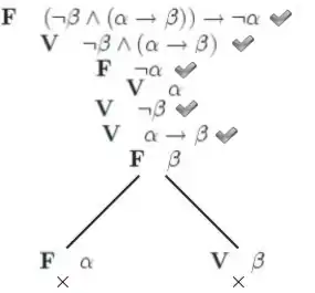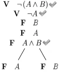 Contudo, digamos que nosso interesse seja apenas determinar se uma fórmula é tautológica ou um argumento é válido. Caso a fórmula ou o argumento seja complexo, poderíamos demorar muito até terminar a tabela, ou, no caso de ser uma contingência ou um argumento inválido, encontrar a valoração na qual a fórmula é falsa, ou a premissa seja verdadeira enquanto a conclusão é falsa, respectivamente.