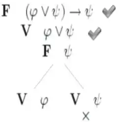 - Agora temos uma situação nova: a falsidade de uma disjunção. Oras! Se estamos supondo que a disjunção entre duas fórmulas é falsa, temos que supor que ambas são falsas: