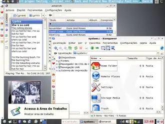 O KDE Tem amplo suporte a temas, além de diversos aplicativos escritos especialmente para ele. Ele é mais ou menos assim: