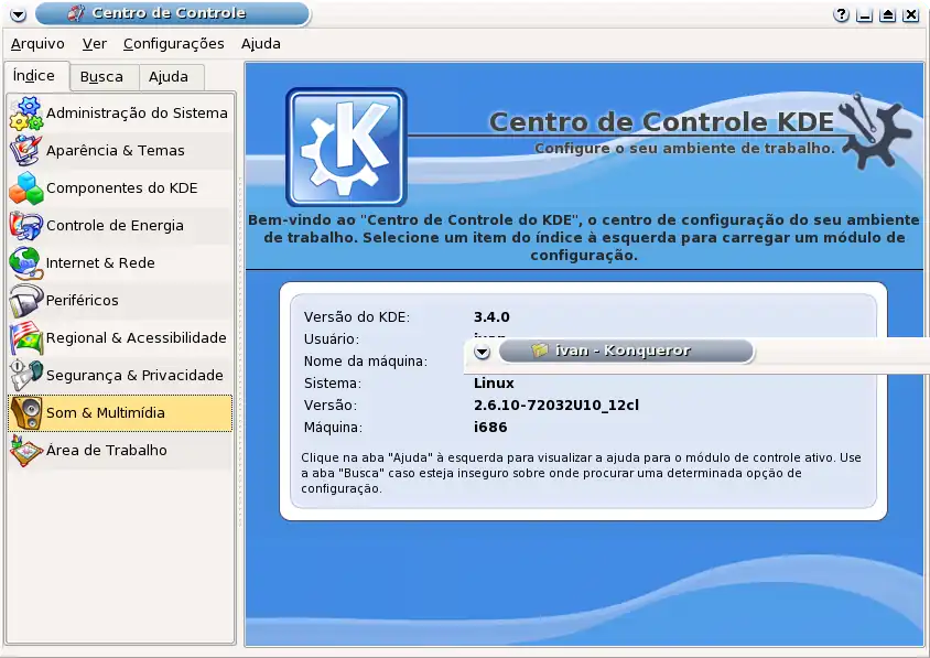 - Aqui você configura o Konqueror, programa que equivale ao Explorer, do Windows. Este programa também funciona como navegador internet, cvs, álbum de fotos e muito mais.