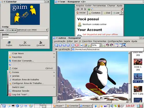 Simpático, não? O tema das últimas 3 fotos, como se pode observar, é parecido com o ambiente do Windows XP(TM). Muitos preferem utilizar este tema, com o intuito de não ser traumática a migração do Windows para o Linux.