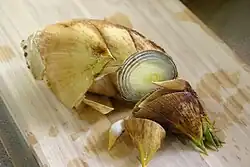 - Cortar brotos novos de bambu em rodelas finas (no máximo de 1 cm) --