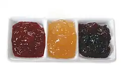Compotas (da esquerda para a direita: morango, marmelo, ameixa).