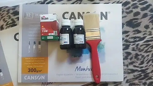 - Papel para aquarela. Precisa ser um papel de alta gramatura (300 g) pois precisa resistir a lavagens.