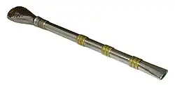 Foram os europeus que introduziram o metal nos apetrechos do mate: a bomba passou a ser feita de prata (abundante na região na época, oriunda das minas de Potosí, na atual Bolívia), com detalhes em ouro. A bomba passou a contar com um pequeno adorno colorido perto do bocal chamado "pitanga" (uma referência à pequena fruta vermelha homônima de aspecto semelhante), que tem a função prática de indicar o lado da bomba que deve ficar voltado para cima. A cuia passou a ter o bocal revestido de prata. E foi criada uma armação de metal para sustentar a cuia, quando ela não estivesse sendo usada. Para os menos abastados, em vez da prata era utilizado outro metal branco menos valioso, como a alpaca ou o alumínio. A água usada no preparo do mate pelo índios guaranis era, inicialmente, fria. Foram os europeus que passaram a utilizar água quente no preparo da bebida, muito provavelmente para evitar doenças oriundas de água contaminada não fervida[8]. Os europeus também passaram a armazenar a erva-mate em bolsas impermeáveis de couro, os chamados "surrões"[9].