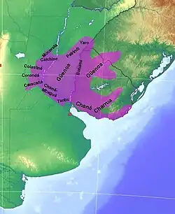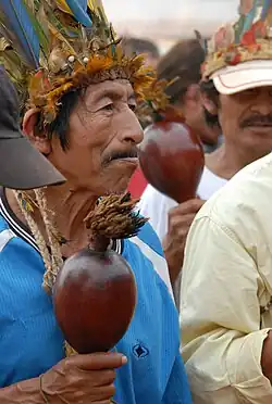 A bebida era consumida também pelos índios carijós, xetás, guairás, charruas, caingangues (que chamam o chimarrão de kógwuin[3]) e os incas, pois todos eles mantinham relações comerciais com os guaranis[4]. O termo "mate" tem origem no idioma dos incas, o quíchua, através do vocábulo mati, significando "cuia, recipiente" e designando a cabaça na qual até hoje se bebe a infusão de erva-mate[5]. O termo "porongo", que nomeia a planta que fornece a cuia usada para beber o mate, também vem do quíchua, significando "vaso de barro com o gargalo estreito e comprido" [6].
