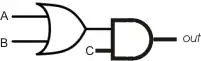 Agora, para que o output final deste circuito seja 1, uma das condições é que o valor de seja 1. A outra condição é que, entre e , ao menos um deles tenha valor 1.