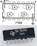 Uma das condições para que o output final deste circuito seja 1, é . A outra condição é que o bit que saia da primeira porta também seja 1. Para tal, se faz necessário que e . Ou seja, neste circuito, para que o output final seja 1, todos os inputs devem ter o valor 1. Caso contrário, o input final é 0.