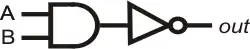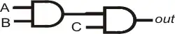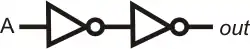 Digamos que , neste caso, ao passar pela primeira porta, teríamos um 0. Este, ao passar pela segunda porta, teríamos um 1. Portando, o output final deste circuito, representado por out, seria 1, caso o input fosse 1.