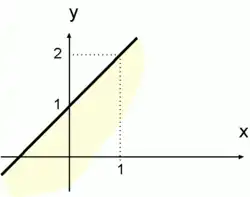 No caso da relação ser definida por inequações, o gráfico correspondente vai representar áreas, e não curvas. (Por razões práticas, no gráfico muitas vezes aparece colorida ou hachurada apenas uma parte, logo abaixo ou acima de uma linha que define a inequação.)