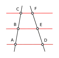 ![]() O teorema de Tales garante que isto é, que . Então e consequentemente . Como resulta que então |