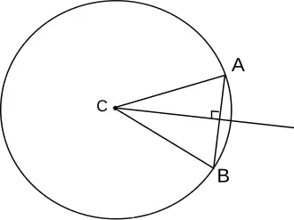 C é o centro do círculo de raio CA = CB = 5 cm. Seja AB = 4 cm.