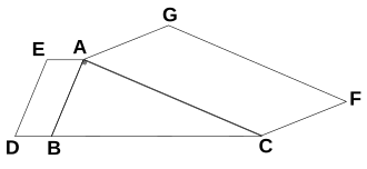 Vamos inicialmente construir o terceiro paralelogramo, seguindo o raciocínio de Pappus, e posteriormente provaremos que a relação entre as áreas é satisfeita. Considere o triângulo ABC e os paralelogramos ABDE e ACFG., figura 15.