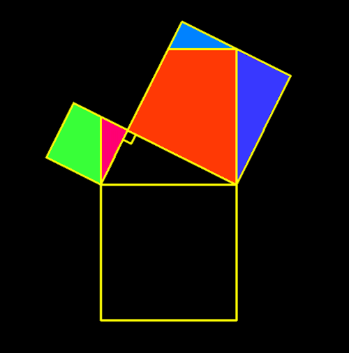 "Num triângulo retângulo, a área do quadrado construído sobre a hipotenusa é igual à soma das áreas dos quadrados construídos sobre os catetos".