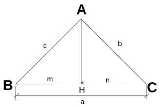 Somando as duas expressões, temos que , como o triângulo ABC é retângulo, pelo Teorema de Pitágoras, temos que . Logo, , como queríamos demonstrar.