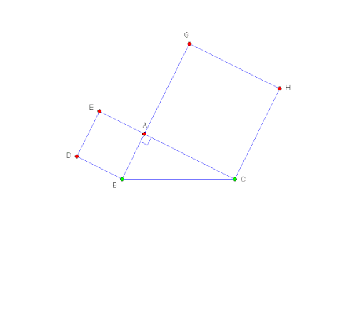 Analogamente mostramos que a área do quadrilátero ACFG é igual a área do quadrilátero ABDE e; portanto, provamos que a soma das áreas dos paralelogramos ACFG e ABDE é igual a área do paralelogramo BCHI.