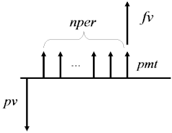 Por convenção, em representações gráficas de um fluxo de caixa, setas para cima representam entrada e setas para baixo representam saída de recursos.