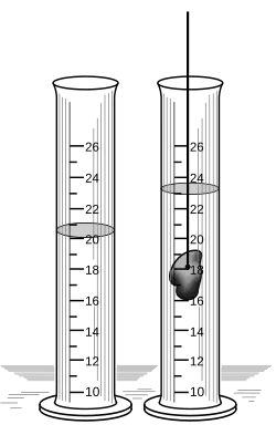 Este "equivalente em líquido" é medido em termos do volume do objeto preenchido com o líquido. A análise quantitativa da lei do empuxo depende das seguintes grandezas: