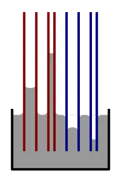 - Ascensão e depressão capilar de líquidos em tubos estreitos
