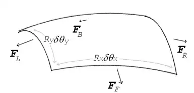 onde Rx e Ry são os raios de curvatura em cada um dos eixos paralelos à superfície; obviamente