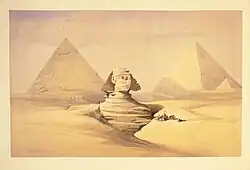 Assim, ficamos sabendo que, quando Thutmose IV reinou, a esfinge já estava bastante coberta pela areia. Em 1816 o capitão Caviglia terminou a retirada da areia que novamente cobria a esfinge e registrou que o corpo da estátua era revestido em pedra e que provavelmente a esfinge tinha sido um dia, pintada com tinta vermelha.