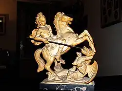 Pode ser sincretizado com São Jorge, devido à armadura e às armas de metal que este santo comumente usa.