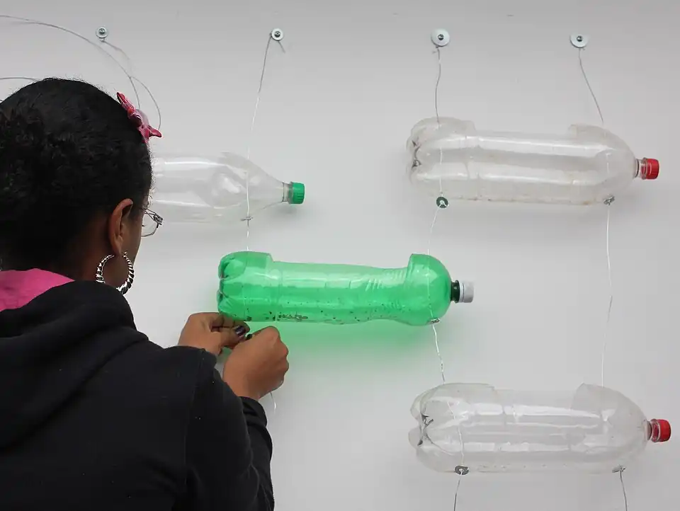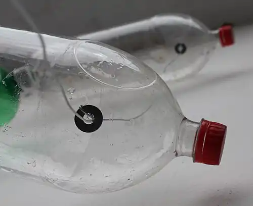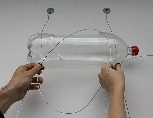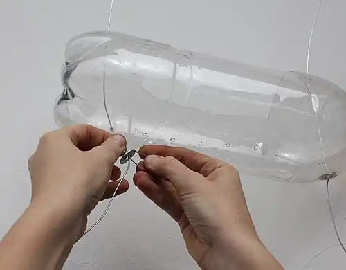 6. Atravesse as extremidades da garrafa perfurada com os fios de arame.