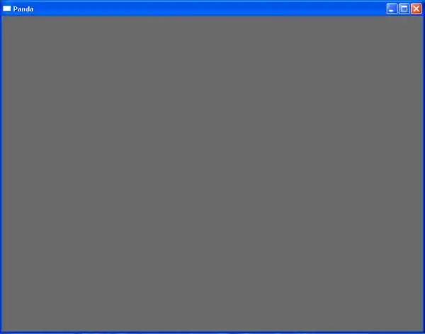 Pressione a tecla "Enter" do seu teclado. Isso rodará uma versão especial do Python que é distribuida com o Panda3D. Se tudo estiver direito, Panda3D irá começar, e você deverá ver a janela de renderizaçao principal aparecer.