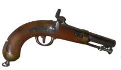 Pistola era a arma de fogo predileta de piratas, pois era portátil, leve, de cano curto, elaborada para ser manejada com uma só mão. Uma pistola geralmente é uma arma pequena de boa empunhadura e rápido manuseio, feita originalmente para uso pessoal (uso por uma pessoa) em ações de pequeno-alcance. No século XV o termo era usado para definir também pequenas facas que podiam ser escondidas dentro das roupas de uma pessoa. No século XVIII o termo começou a ser usado para definir a pequenas armas de fogo de mão. Também podiam ser usadas como porretes, quando havia ausência de pólvora.