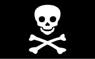 Esta é uma das mais famosas bandeiras piratas: uma caveira humana e as tíbias cruzadas, em fundo negro.