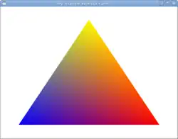 É comum que uma implementação do OpenGL aguarde a atualização vertical da tela depois atualize o buffer da tela física = isto é chamado de vertical sync. Quem neste caso, o triângulo será renderizado aproximadamente 60 vez por segundo (60 FPS). se você desativar o vertical sync, o programa manterá atualizando o triangulo continuamente, resultado em um alto uso da CPU. Vamos nós encontrar denovo com o vertical sync, quando nós criarmos aplicativos com alteração de perspectiva.