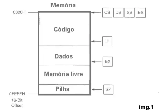 No ano 1978 a intel lançou no mercado o processador 8086 16-bit capaz de endereçar 1 MiB de memória física usando registros de segmentos esses registros indicam os lugares da memória que devem ser usado para o código,pilha,dados,dados suplementares .
