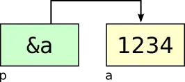 Com isso, fica claro o esquema ao lado: a variável a contém o valor 1234 e o ponteiro p contem o endereço de a (&a).