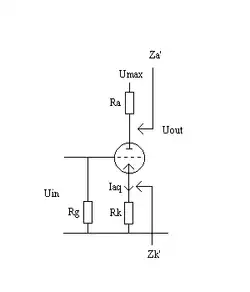Se Ra = 0 e você extrair o sinal do catodo, você obtém um chamado seguidor de cátodo, onde a amplificação de tensão quase sempre está muito próxima de um. Neste caso, também obteremos uma impedância de saída muito baixa.