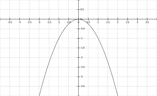 Note que a única diferença dela para a anterior é o sinal de menos. Isto implica que os valores que esta função assume são os mesmos que os que a anterior assume, mas com o sinal trocado. Por exemplo, para , a anterior valia 9, mas esta vale -9. Assim, o gráfico desta função é o inverso da outra (faça vc mesmo uma tabela como na anterior e verifique).