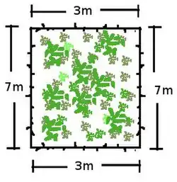 Mas, ele percebeu que se fizesse um cercadinho retangular com base igual a 3 metros e altura igual a 7 metros (como na figura), a área do cercadinho seria igual à 21 metros quadrados (lembre-se, a área de um retângulo é igual a base vezes a altura), por outro lado, se ele fizesse a base igual a 2 metros e a altura igual à 8 metros, então a área seria 16 metros quadrados. Assim, começou a se perguntar qual seria a área máxima que ele poderia obter com aqueles 20 metros de arame, pois, quanto maior a área, mais ele conseguiria plantar.