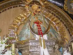 - Nossa Senhora de Guadalupe: corresponde a uma estampa de Nossa Senhora que é venerada nas proximidades da Cidade do México e que acredita-se ter tido uma origem milagrosa. Segundo a lenda, em 1531 um índio asteca recém-convertido ao Catolicismo, chamado Juan Diego, testemunhou uma aparição de Nossa Senhora em um local chamado Tepeyac, a noroeste da Cidade do México. Nossa Senhora teria lhe dito para comunicar ao bispo que desejava que uma igreja fosse construída naquele local em sua homenagem. O bispo não acreditou em Juan Diego e exigiu uma prova da aparição. Juan Diego então se encontrou novamente com Nossa Senhora, no mesmo local anterior, e esta lhe pediu que colhesse flores num terreno próximo. Mesmo não sendo a época das flores, Juan Diego conseguiu encontrar muitas flores no local indicado por Nossa Senhora e as levou ao bispo enroladas em seu manto. Ao abrir o manto diante do bispo, as flores se derramaram no chão, revelando que uma imagem de Nossa Senhora havia surgido miraculosamente estampada no manto. O bispo finalmente acreditou no relato de Juan Diego e mandou erigir uma igreja no local indicado para guardar o manto estampado.