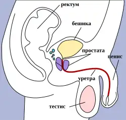 O espermatozóide é produzido pelos testículos (no quadro abaixo à direita, onde se lê "tecthc") e se conecta ao organismo feminino através da emissão de esperma pelo pênis em estado de ereção dentro da vagina, já devidamente lubrificada pelas glândulas de Bartholin, durante o ato sexual. Já dentro do organismo feminino, o espermatozóide se desloca em direção às tubas uterinas (canais que ligam os ovários ao útero. No quadro abaixo à esquerda, onde se lê "jajovod"), onde ocorrerá a sua fusão com o óvulo produzido pelos ovários (no quadro abaixo à esquerda, onde se lê "jajnik"), ou seja, a fecundação. O feto resultante da fecundação do óvulo pelo espermatozóide irá se alojar na parede do útero (no quadro abaixo à esquerda, onde se lê "maternica") e aí irá compartilhar vasos sanguíneos com o organismo da mãe, completando seu desenvolvimento até o nascimento do bebê, normalmente nove meses após a fecundação do óvulo.