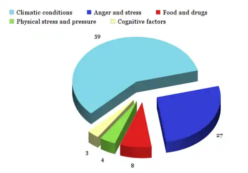 - Condições climáticas: 59%. Isto inclui 55% devido a condições meteorológicas, 1% devido à estação sazonal e 3% devido à temperatura ambiente.