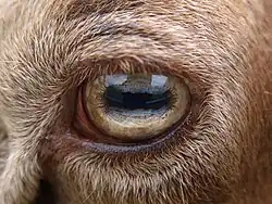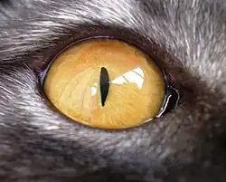 Os raios de luz entram no nosso olho através de uma fenda (a pupila), presente na porção anterior do olho. O aspecto preto é devido ao facto da luz ser completamente absorvida pelo tecido no interior do olho. A luz apenas consegue entrar no olho através da pupila, o que significa que a quantidade de luz que é detectada é determinada pelo diâmetro pupilar. Um esfíncter pigmentado, a íris, rodeia a pupila e é responsável pelas diferentes "cores de olhos" presentes em humanos.