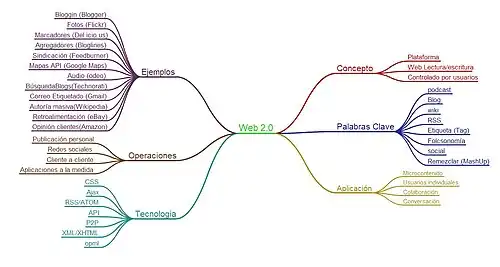 O primeiro conceito amplamente utilizado e aceito de Web 2.0 foi escrito por Tim O’Reilly [5] o qual a definiu da seguinte forma: "Web 2.0 é a mudança para uma internet como plataforma, e um entendimento das regras para obter sucesso nesta nova plataforma. Entre outras, a regra mais importante é desenvolver aplicativos que aproveitem os efeitos de rede para se tornarem melhores quanto mais são usados pelas pessoas, aproveitando a inteligência coletiva". Segundo Tim O'Reilly, a regra mais importante seria desenvolver aplicativos que aproveitem os efeitos da rede para se tornarem melhores quanto mais são usados pelas pessoas, aproveitando a inteligência coletiva. Posteriormente Tim O'Reilly definiu hierarquicamente a Web 2.0