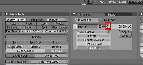 Agora saia do Edit-mode. Adicione um Sub-Surf Modifier para a malha, ajustado no nível dois.