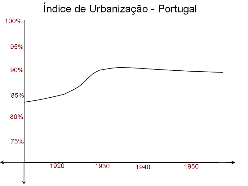 As pessoas, na desordem, começaram a ir do campo à cidade, as malhas urbanas cresceram, descontrolavelmente. Isto foi o Êxodo Rural. Abaixo, o gráfico do índice de urbanização em um país em desenvolvimento (um país em desenvolvimento, em sua história, é variavel o Índice de Urbanização):
