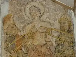 Afresco do martírio de Santa Águeda no interior da Igreja de Santa Águeda em Ris (Puy-de-Dôme), na França