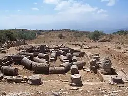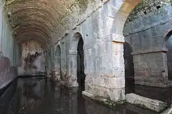 As construções mais imponentes visíveis no sítio são as cisternas da cidade. Datadas do período romano, não é de se excluir que as mais antigas sejam do período helenístico. A mais imponente de todas as cisternas, chamada gama (Γ) devido à sua forma, mede 55,8 metros de comprimento por 25 m de largura e tem capacidade para 3 050 m³ de água. O teto, já desaparecido, era originalmente abobadado. As paredes são reforçadas no interior por uma parede de tijolos e argamassa. A estanquidade era assegurada por uma espessa camada de gesso impermeável. Devido ao comprimento do edifício, foi adicionado um muro de sustentação a fim de ajudar as paredes a suportar o teto e a pressão da água. Ali foi colocada uma escada que permitia descer à cisterna e fazer a sua manutenção. A conduta de evacuação não está ao nível do solo, mas ligeiramente elevada, a fim de que as impurezas presentes na água não atingissem a conduta de água potável e se depositassem no fundo do reservatório.[22]