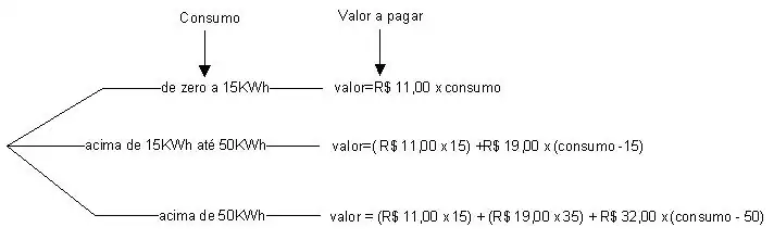 Seja a especificação do processo de cálculo do valor da conta de energia elétrica. Uma árvore de decisão para expressar tal problema seria: