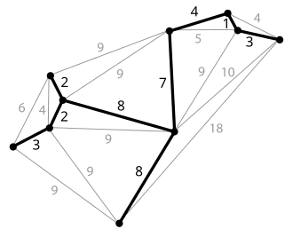 Dado um grafo não orientado conectado, uma árvore de extensão deste grafo é um subgrafo o qual é uma árvore que conecta todos os vértices. Um único grafo pode ter diferentes árvores de extensão. Nós podemos assinalar um peso a cada aresta, que é um número que representa quão desfavorável ela é, e atribuir um peso a árvore de extensão calculado pela soma dos pesos das arestas que a compõem. Uma árvore de extensão mínima (também conhecida como árvore de extensão de peso mínimo ou árvore geradora mínima) é então uma árvore de extensão com peso menor ou igual a cada uma das outras árvores de extensão possíveis. Generalizando mais, qualquer grafo não direcional (não necessariamente conectado) tem uma floresta de árvores mínimas, que é uma união de árvores de extensão mínimas de cada uma de suas componentes conexas.