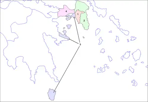 A prefeitura da Ática é a única da região de Ática e se subdivide em quatro νομαρχίες ("nomarchíes", algo como subprefeituras):
