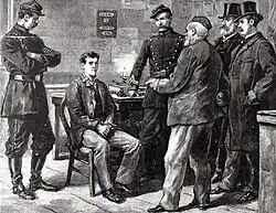 - ↑ «THE GUILLOTINE'S SURE WORK; EMILE HENRY'S HEAD SEVERED FROM HIS BODY. The Bomb Thrower of the Hotel Terminus Expiates His Crime with His Life -- The Execution in Paris at Daybreak This Morning -- The Crime for Which the Anarchist Suffered Death -- Three Men Killed by the Bomb Which He Threw. (Published 1894)». The New York Times (em inglês). 21 de maio de 1894. ISSN 0362-4331. Consultado em 11 de fevereiro de 2021